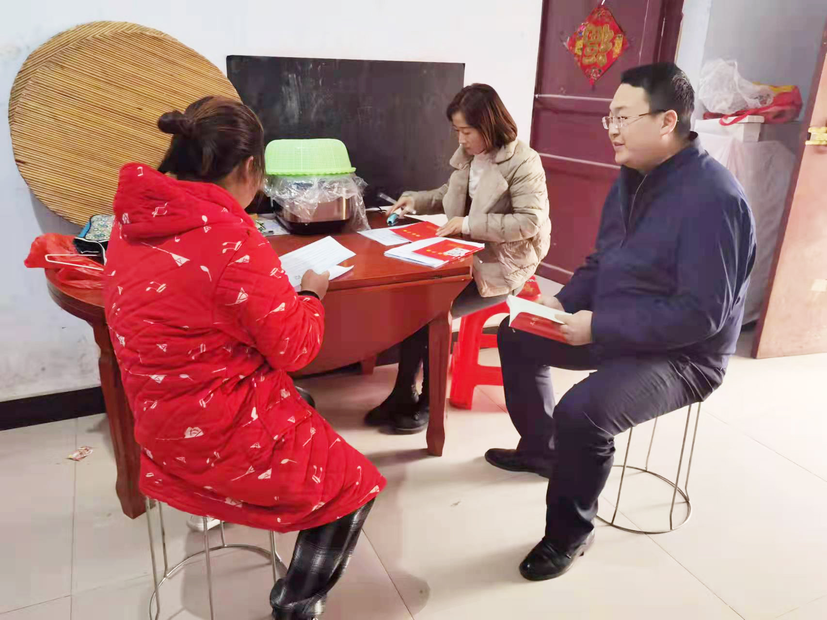 杨程郡(左一)入户了解特色种植芝麻收成情况。